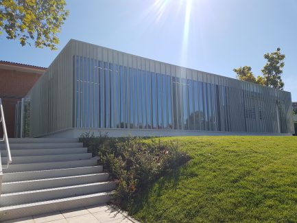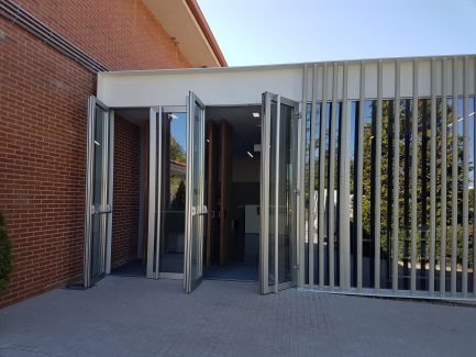 Aquí tenéis el cerramiento del colegio Runymede en aluminio COR70 hoja oculta